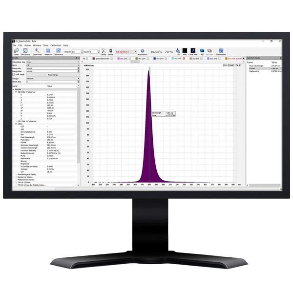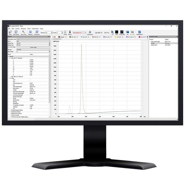 GL Spectis 4.0的可用光譜工作范圍從200nm開始,直至1050nm。專用的熱調(diào)節(jié)功能可在高達35C的不同應(yīng)用溫度下穩(wěn)定讀數(shù)。由于進行了正確的校準,因此絕對UV光譜值不受雜散光的影響。