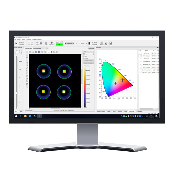 這款新型圖像亮度相機可與我們的光譜儀器(例如GL SPECTIS 1.0 touch)結(jié)合使用,以比色值(例如CCT,CRI等)擴展質(zhì)量控制。此外,它還將提供自動的濾光片失配校正程序,并支持對多色LED器件進行測試的測量。